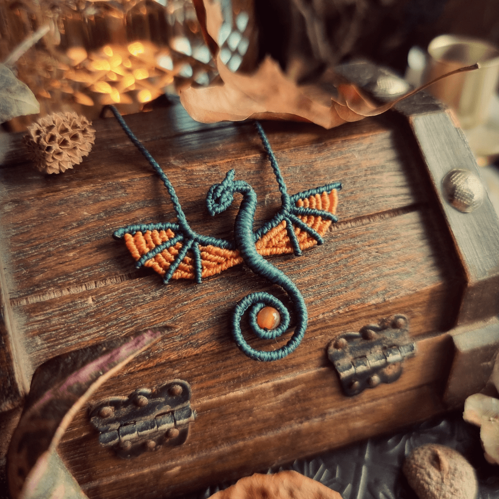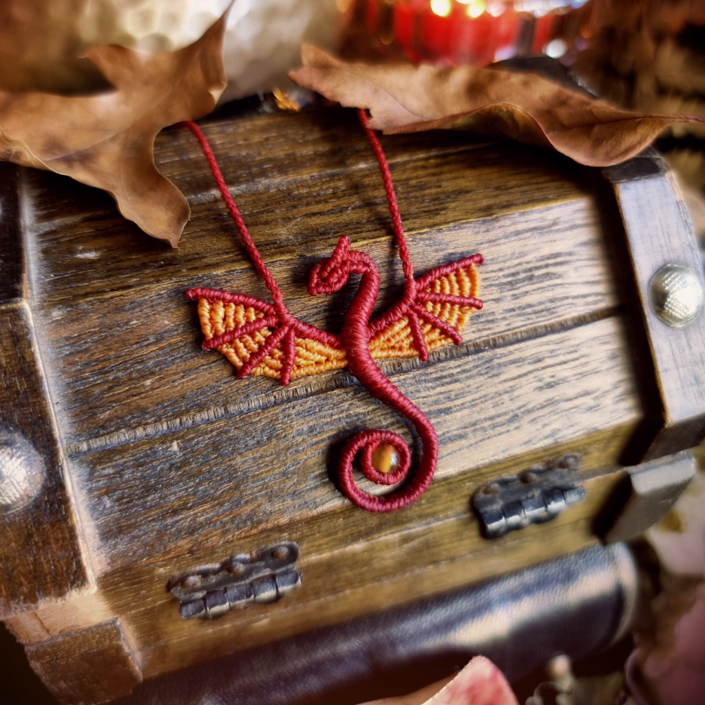 Tandis que mes mains tissent, les dragons s’immiscent. Alors, mon souffle devient messager de leur sagesse et mes nœuds viennent la sceller, tel un secret vous étant réservé.